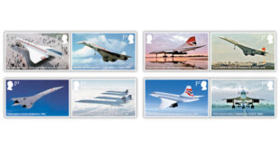By David Hartwig Great Britain’s Royal Mail marks the 50th anniversary of Concorde’s commercial service Jan. 21 with a set of eight stamps plus a four-stamp souvenir sheet. The Jan. 21 issue date comes exactly 50 years after British Airways and Air France inaugurated supersonic passenger flights with simultaneous departures …