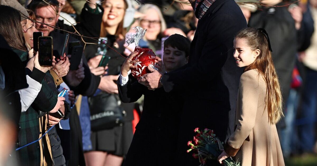 A video, as well as several photographs, show William receiving a huge Lind chocolate ball while greeting fans, with his youngest wasting no second before he nicks it off him, looking gleeful.